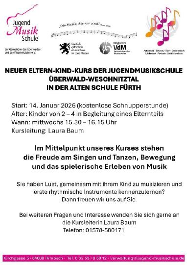 Für Kinder von 3 Monaten bis 3 Jahren bietet die Jugendmusikschule BABY- und ELTERN-KIND-GRUPPEN an.